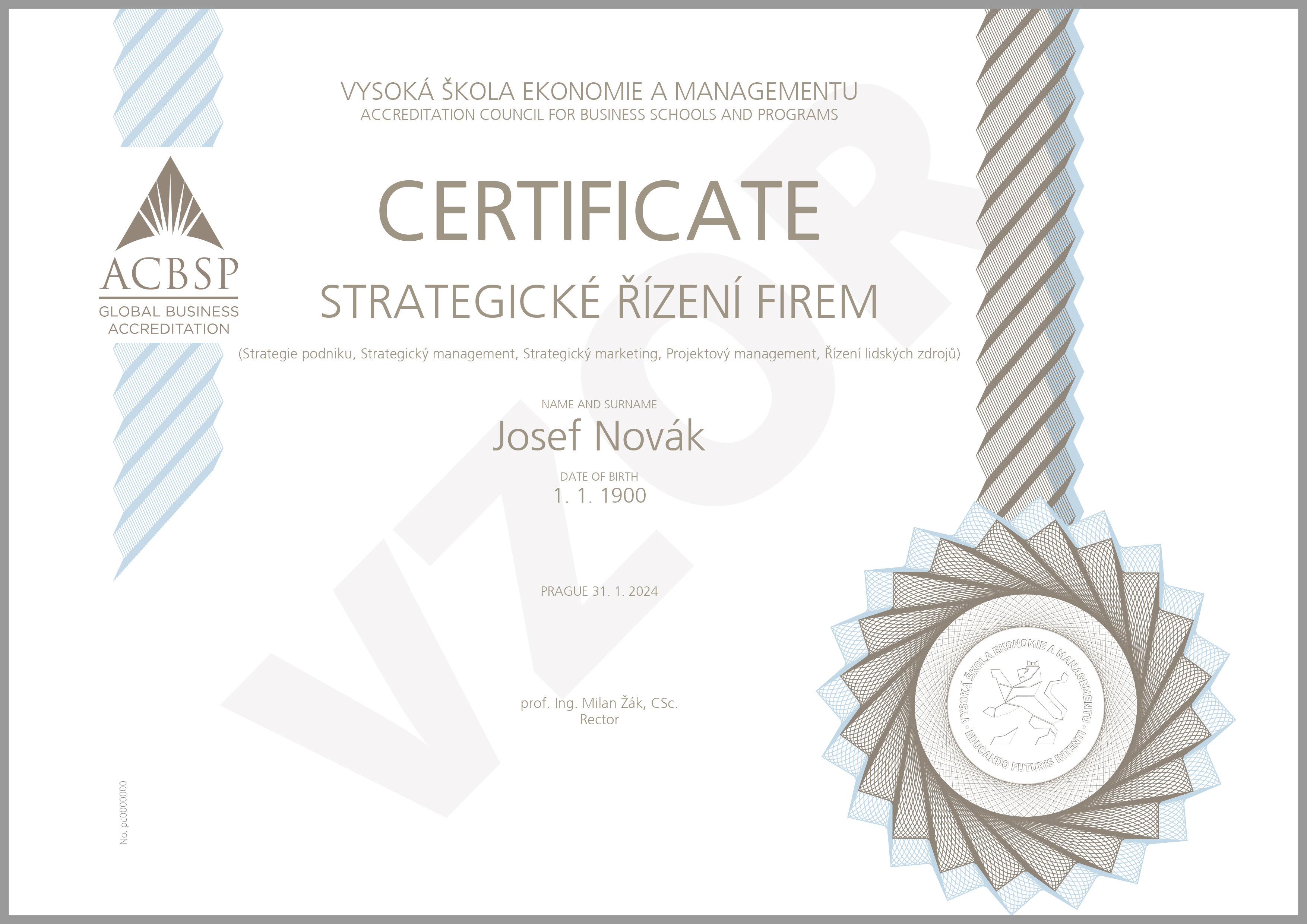 - Absolvent získá Certifikát VŠEM v elektronické podobě (absolvování a ukončení programu klasifikovaným výstupem, tzn. zkouškou) a příslušný počet kreditů). Zkoušky jsou skládány elektronicky v budově VŠEM (EZK).